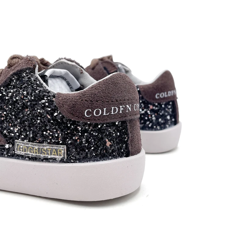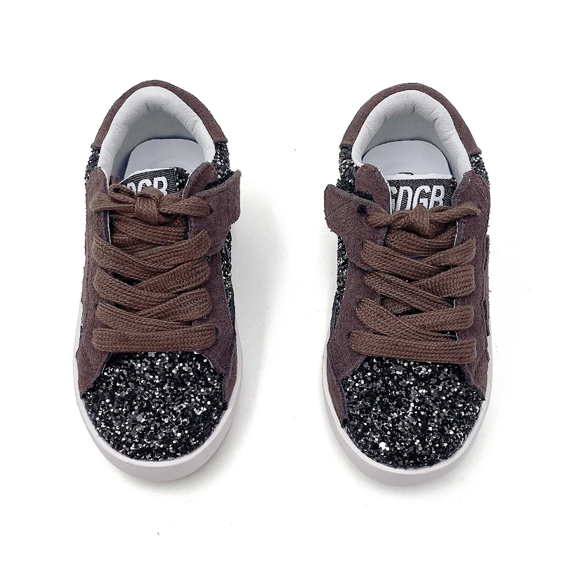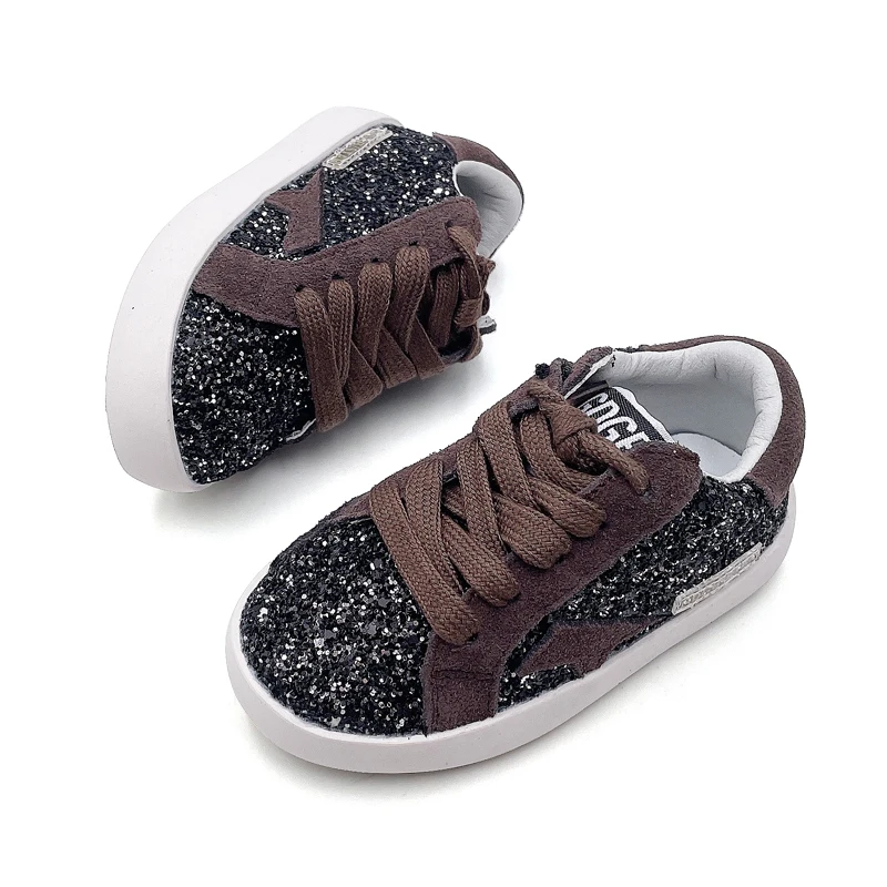 High Quality Girls Brown Shoes Wholesale Black Glitter Children's Casual Footwear Genuine Leather Little Kids Sport Sneakers